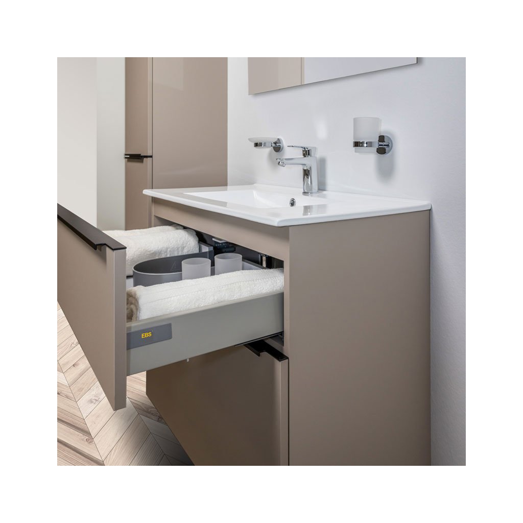 Série koupelnového nábytku Mailo umožňuje kombinovat skříňky do mnoha různých variant. Vytvořit tak lze jak složité kombinace do velkých koupelen, tak minimalistické řešení v moderním designu. Šuplíky jsou vybaveny designovými chromovanými úchytkami a značkovými pojezdy Strong s pomalým dovíráním. Na výběr je ze tří barevných kombinací, bílá lesk, dub Riviera a antracit. Skříňky mají laserové opracování hran a jsou dodávány smontované a všechny jsou určené k zavěšení.Umyvadlo z litého mramoru je ošetřeno povrchovou úpravou Evermite. Jedná se o polymerový základ jež činí umyvadlo odolnější, vytváří ochranou bariéru. Ta minimalizuje riziko poškození způsobené používáním. Díky úpravě Evermite je povrch o 40% odolnější vůči oděru. Povrch zůstává lesklý jako v den nákupu. Hladký povrch a nízká propustnost zabraňuje usazování vodního kamene a mýdlových zbytků. Povrch vždy vyčistíte od stop kávy a čaje, nezažloutne. Povrch je odolný i vůči silným chemikáliím. Umyvadlo je určeno pro nábytek, nelze instalovat samostatně na zeď. Zápustná umyvadla podpoří moderní a elegantní vzhled každé koupelny a doladí tak celkový design interiéru. Umyvadla lze osadit do desky i ve více kusech vedle sebe.