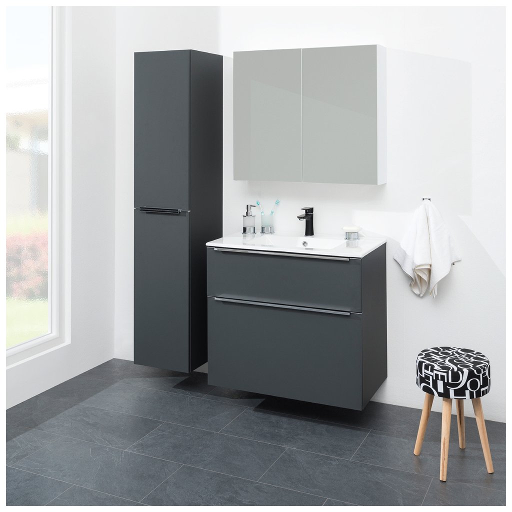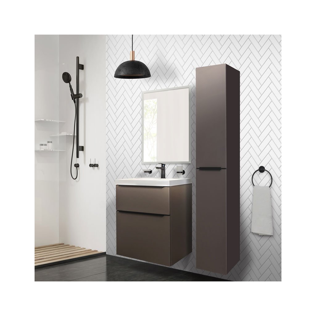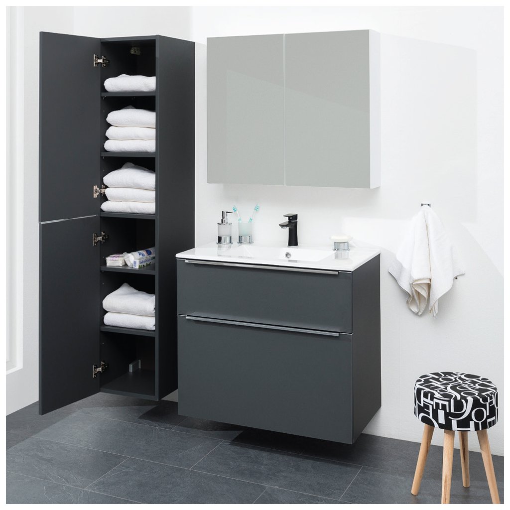 Mereo, Mailo, koupelnová skříňka vysoká 170 cm, černé madlo, Multidecor, CN594LPBCIPM