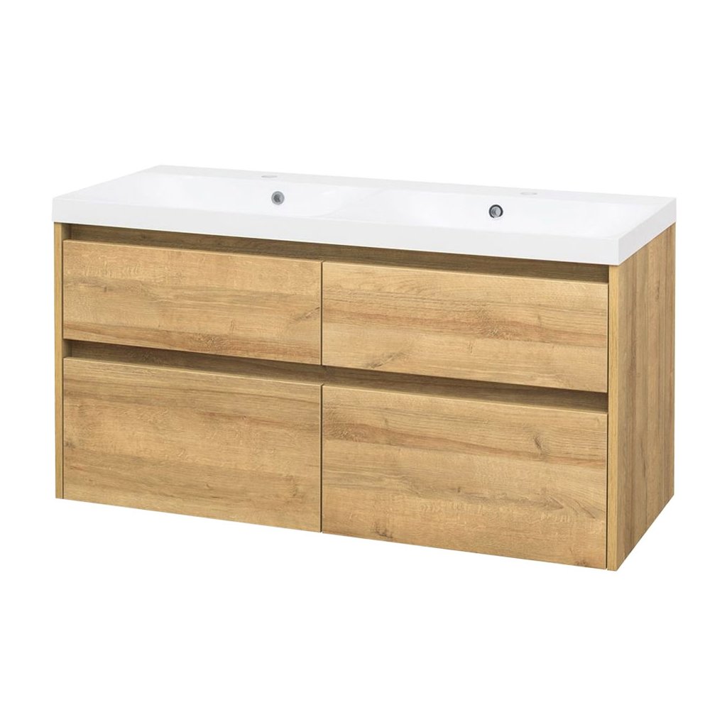 Mereo, Opto, koupelnová skříňka s umyvadlem z litého mramoru 121 cm, bílá, dub, bílá/dub, černá, CN923M