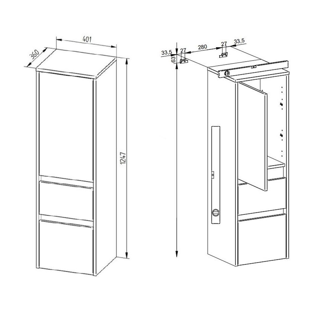 Jednoduchost, efektivnost, elegance. To jsou hlavní společné jmenovatele koupelnového nábytku, který ozdobí každou koupelnu. Hrany skříněk jsou laserově opracovány. Skříňka obsahuje 2 zásuvky a dvířka za kterými se ukrývají 2 police. Vybírat můžete ze 2 typů otevírání (levé, pravé) a mnoha barevných odstínů: Multidecor. Skříňka se dodává ve složeném stavu.Doplňkové parametry