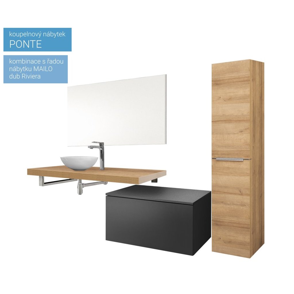 Série koupelnového nábytku Ponte umožňuje kombinovat skříňky a desky do různých variant. Umožňuje vytvořit kombinace do velkých koupelen i minimalistické řešení v moderním designu. Otevírání zásuvek je řešeno systémem push-open, tedy otevírání bez úchytek. Zásuvky jsou osazeny kvalitním německým kováním značky BLUM s pomalým dovíráním. Na výběr je mnoho barevných variant, Multidecor. Skříňky jsou dodávány ve smontovaném stavu a všechny jsou určeny k zavěšení.Doplňkové parametry