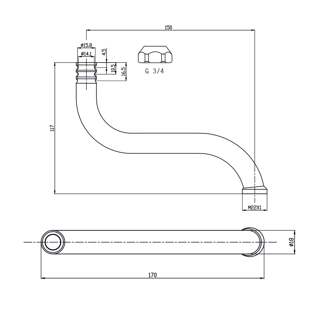 Ramínko trubkové s připojovací maticí 3/4" o celkové délce 150 mm. Ramínko je vyrobeno z kvalitní pochromované mosazi. Ramínko je určeno pro nízkotlaké baterie CBE301019M, CBE301025M, CBS602007M, CBS602010M.Doplňkové parametry