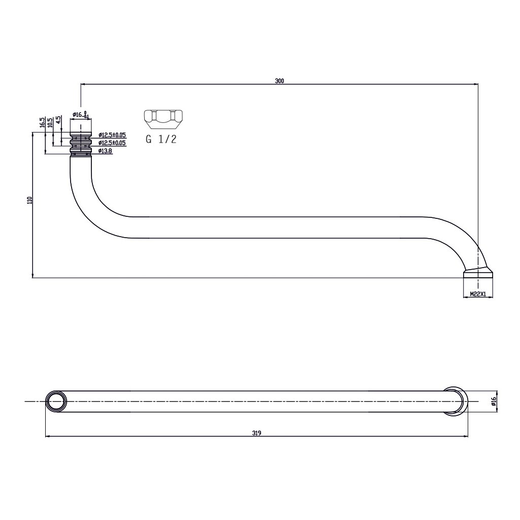 Ramínko trubkové s připojovací maticí 1/2" o celkové délce 300 mm. Ramínko je vyrobeno z kvalitní pochromované mosazi. Ramínko je určeno pro nízkotlaké baterie CBS301003M.Doplňkové parametry