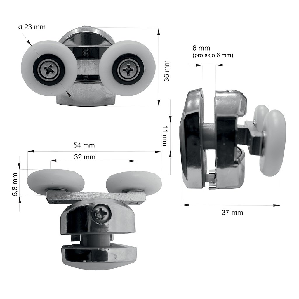 Mereo, Sady pojezdů – horní, pojezdy pevné pro kouty CK608xxK, sada 4ks, CKND245K