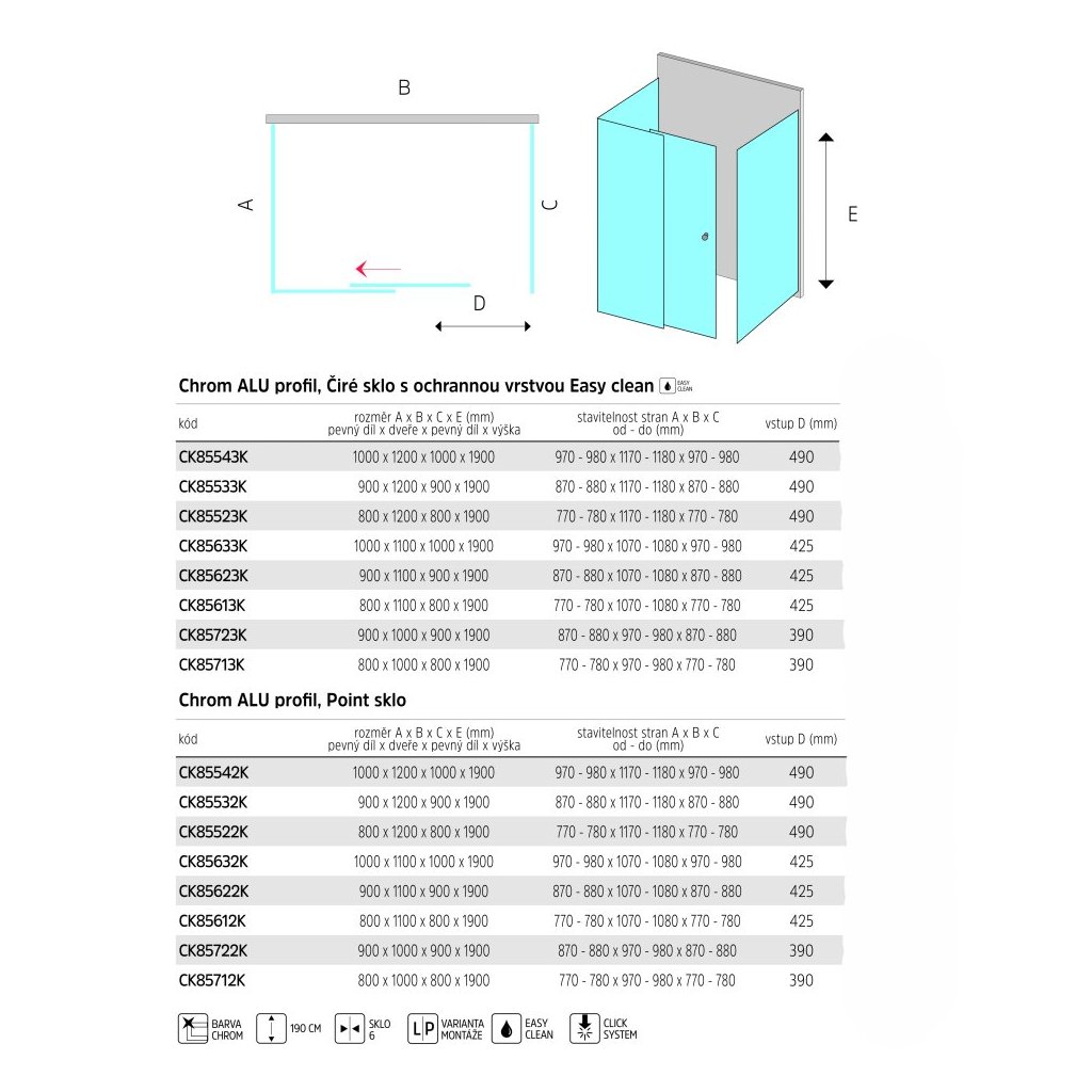 Lima je řada sprchových koutů Mereo, která navodí pocit čistého designu v každé moderní koupelně. Rovné hladké plochy, čisté linie a ostré hrany profilů umocňují pocit exkluzivity. Kvalitní skleněné výplně s bezpečnostním sklem je možné zvolit jak v čirém provedení, tak v neprůhledném provedení se sklem Point, které navodí lepší pocit intimity při sprchování.Snadné zavření a těsnost zajišťují stírací a silikonové lišty, opatřené na vstupní části magnetem, nejedná se však o hermeticky uzavřený výrobek.