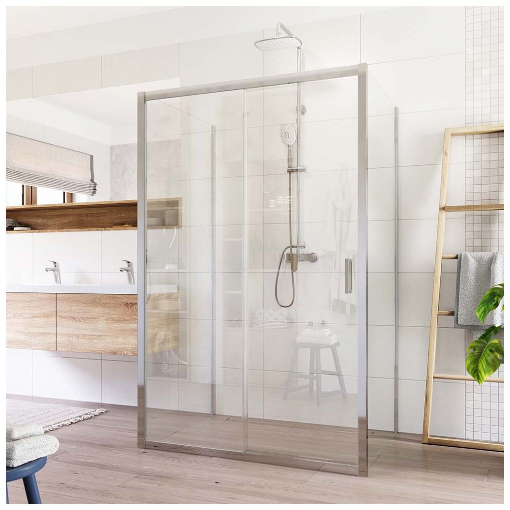 Mereo, Sprchový kout, Lima, obdélník, pev.díl x zasunovací dveře x pev.díl, chrom ALU, sklo Čiré, CK85543K