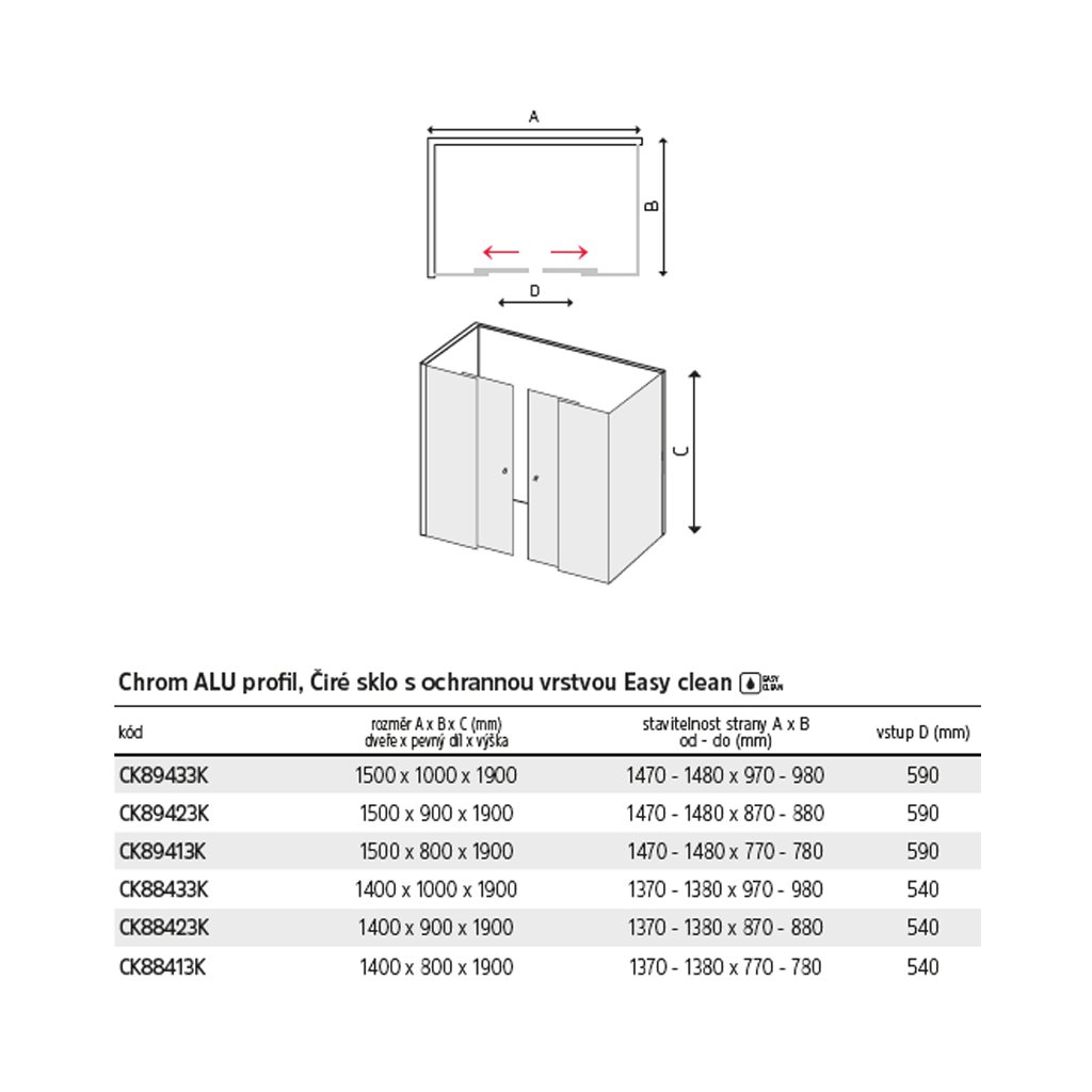 Mereo, Sprchový kout, Lima, obdélník, výša 190 cm, chrom ALU, sklo Čiré, CK89433K