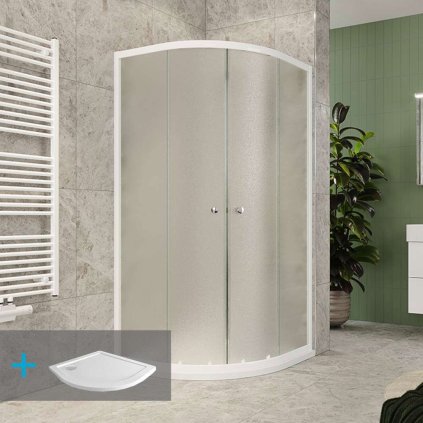Mereo, Sprchový set z Kory Lite, čtvrtkruh, 90 cm, bílý ALU, sklo Grape a vysoké SMC vaničky, CK35121ZH