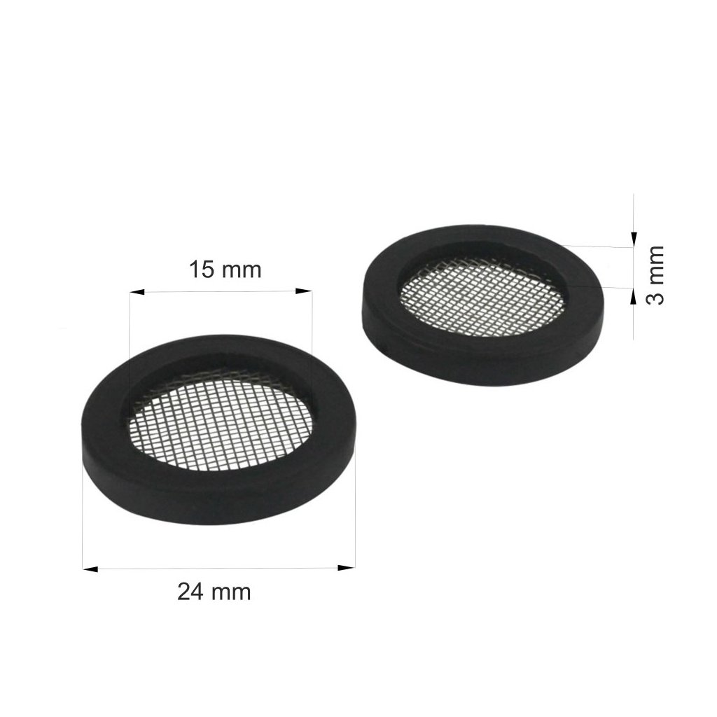 Gumové těsnění s nerezovým sítkem pro vodovodní baterie. Těsnění s nerezovým sítkem zabraňuje vniknutí nečistoty do vodovodní baterie.Doplňkové parametry