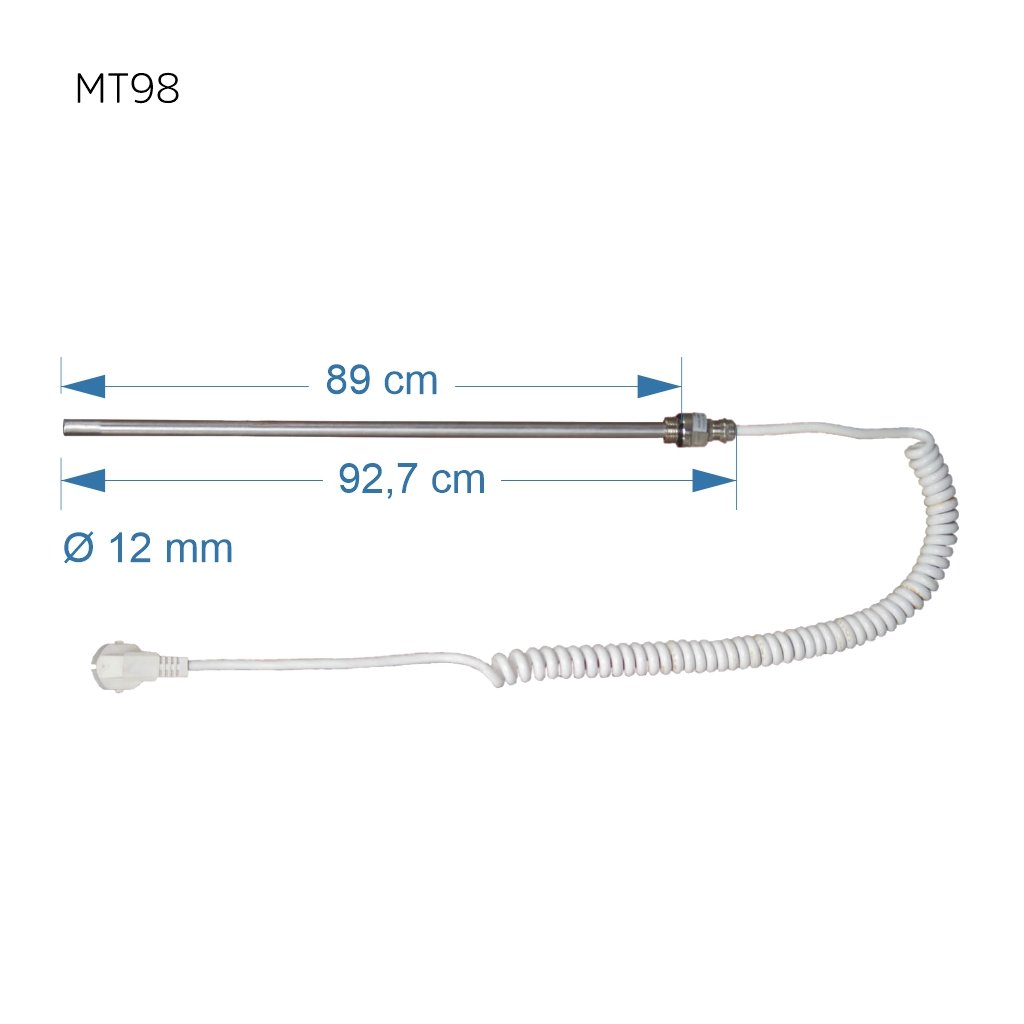 Elektrická topná tyč bez termostatu slouží k vytápění koupelnových radiátorů - žebříků. Tato topná tyč po zapnutí tělesa do zásuvky nemá žádnou regulaci ani termostat a hřeje dokud ji nevypnete. Termostat pod označením MT99 je možné zakoupit samostatně. Délka kabelu u topné tyče je 120cm a je zakončena vidlicí s ochranným kolíkem.Doplňkové parametry