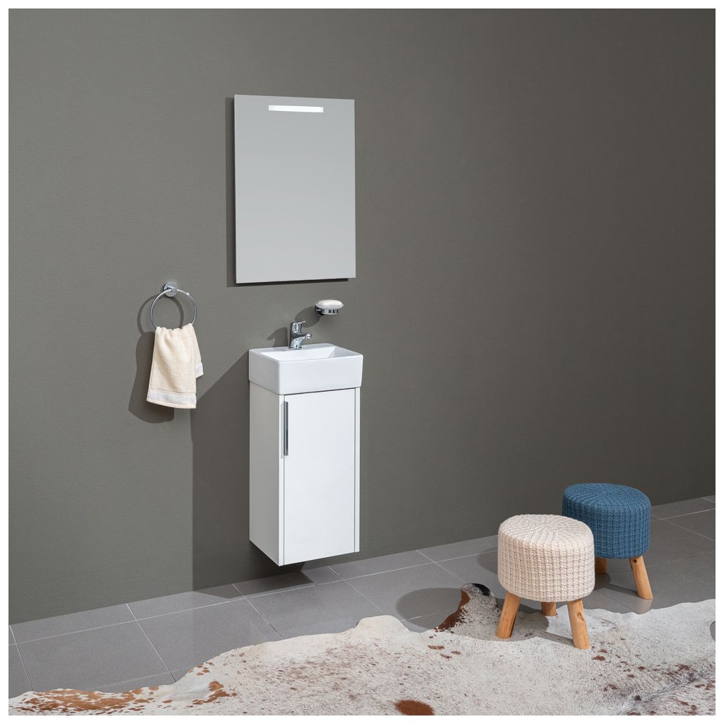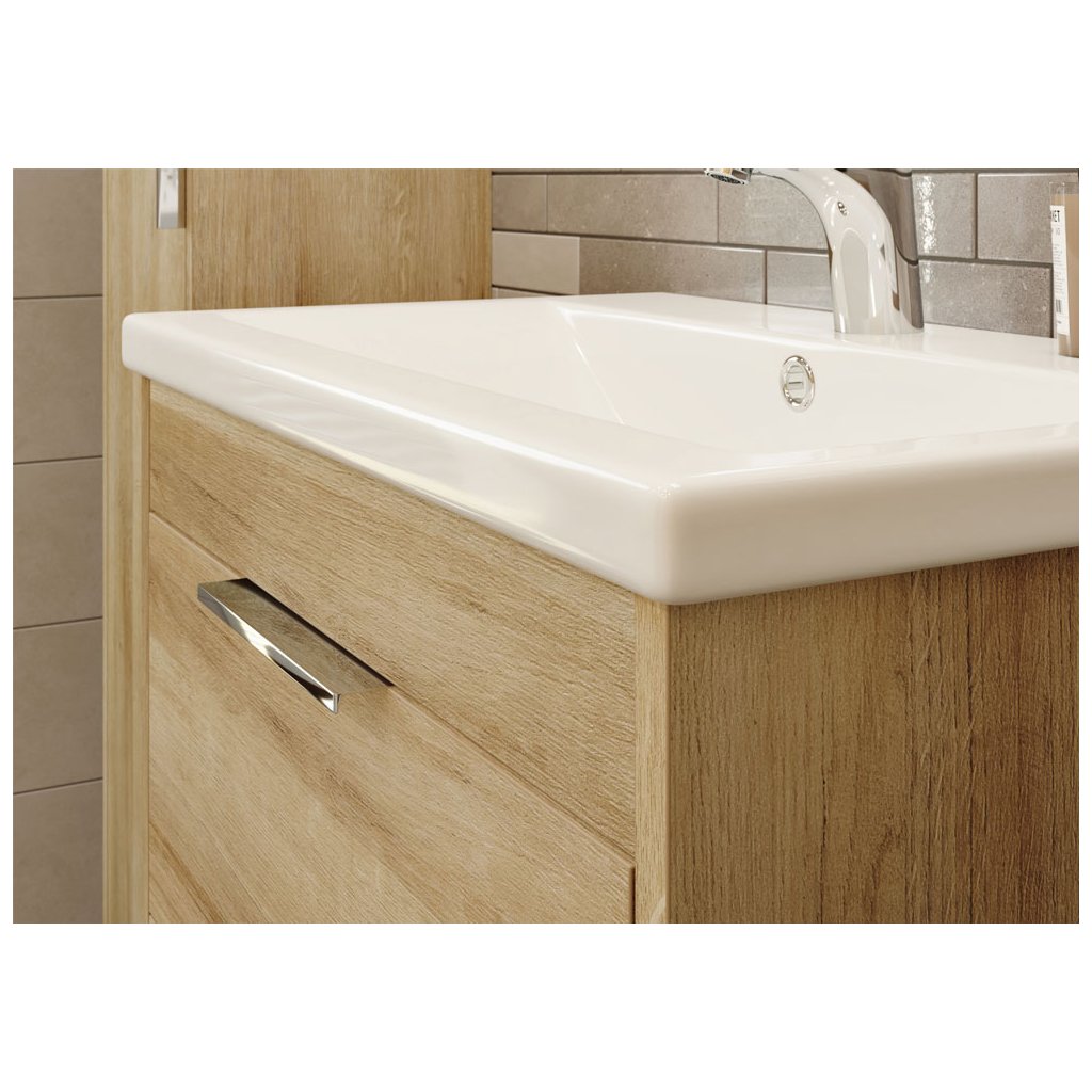 Série koupelnového nábytku Vigo umožňuje kombinovat skříňky do mnoha různých variant. Vytvořit tak lze jak složité kombinace do velkých koupelen, tak minimalistické řešení v moderním designu. Dvířka jsou vybaveny designovými chromovanými úchytkami a pomalým dovíráním. Na výběr je ze dvou barevných kombinací, bílá lesk, dub Riviera. Skříňky mají laserové opracování hran a všechny jsou určené k zavěšení. Skříňka je dodávána ve smontovaném stavu mimo dvířek, kde si při montáži pantů zvolíte levé nebo pravé otevírání.- baterie je uprostřed umyvadla