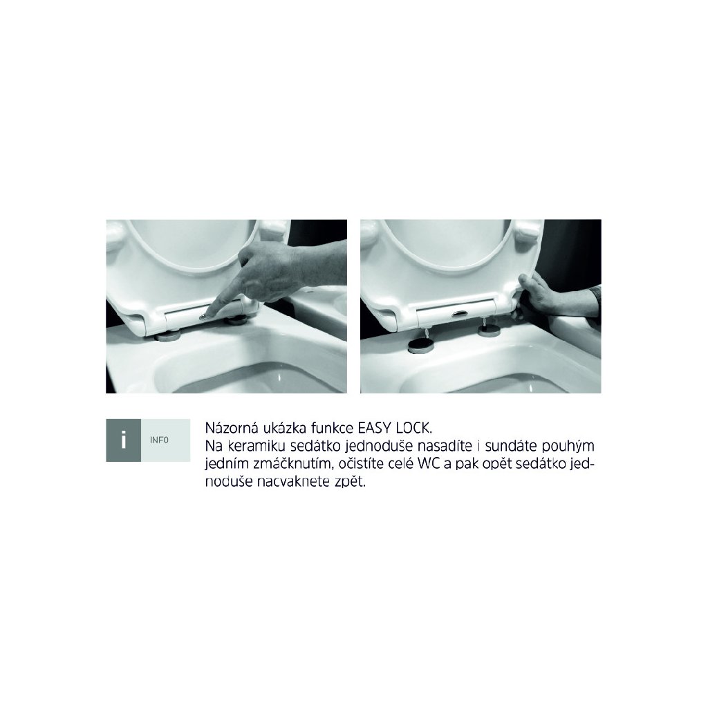 - easy lock: systém umožňující jednoduchým stlačením odejmout WC sedátko od mísy (zvyšuje úroveň hygieny toalety)