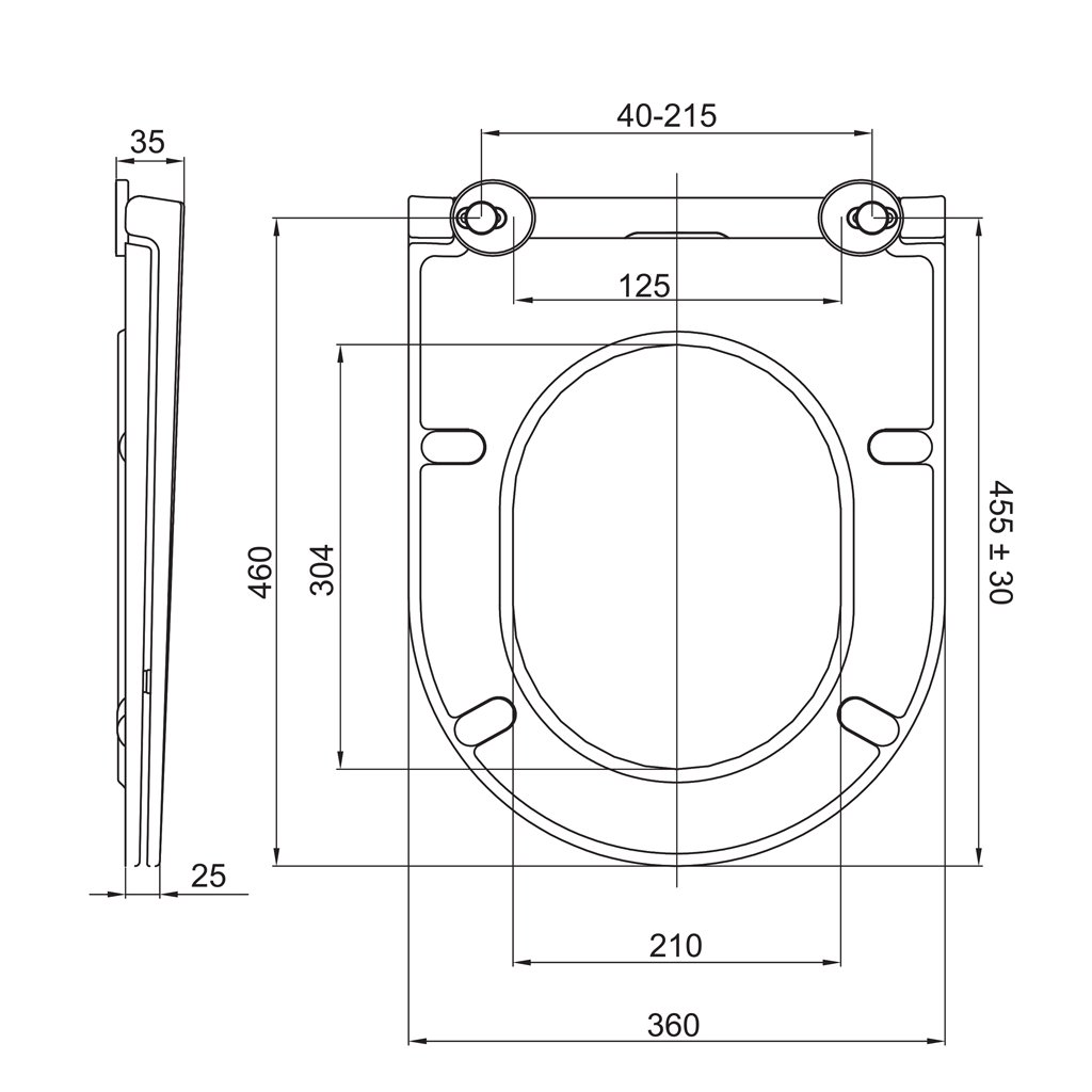 Samozavírací WC sedátko má nerezové, nastavitelné úchyty, které lze přizpůsobit rozměrům mísy.