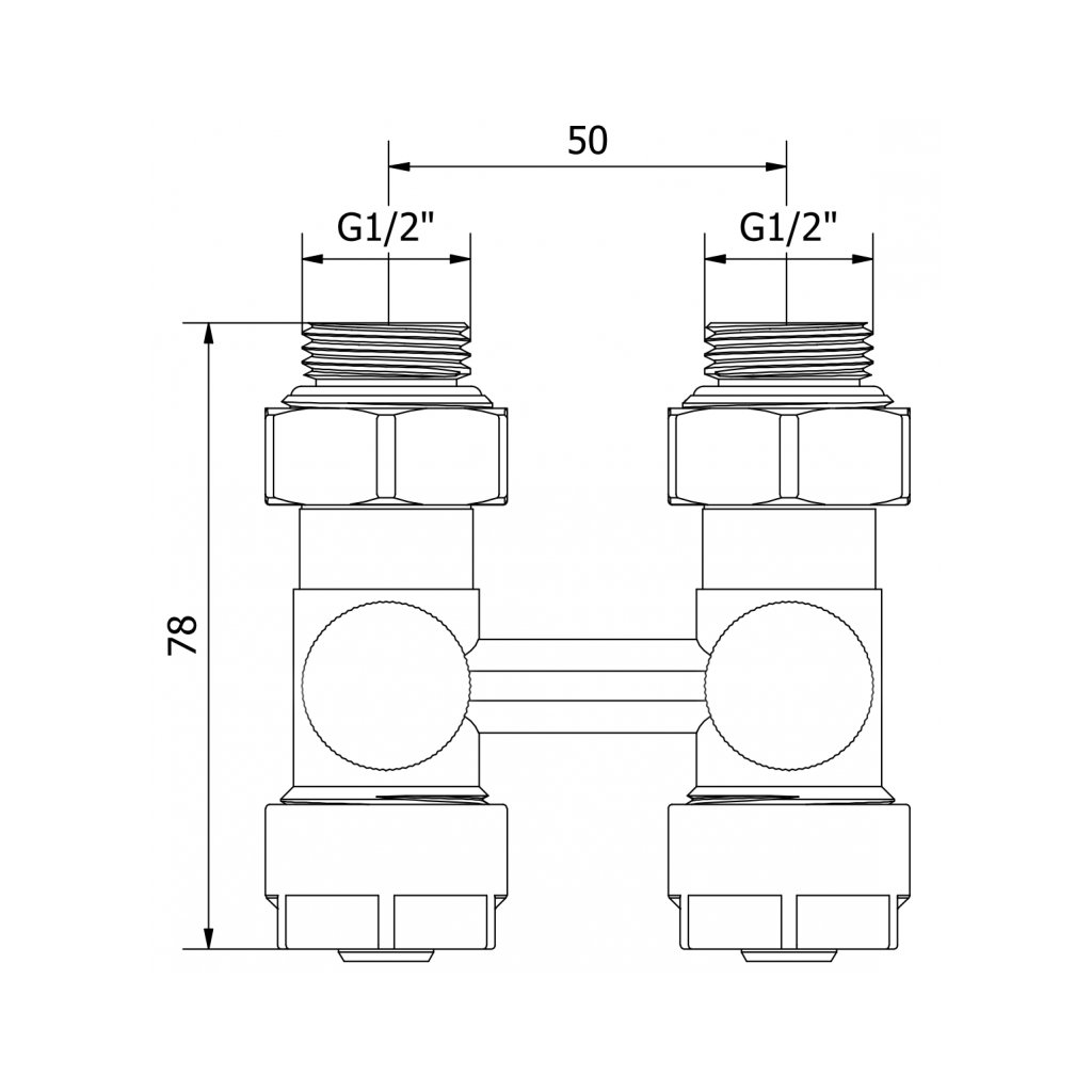 Mexen, dvoutrubkový radiátorový ventil DN50, přímý 1/2"x16 mm, ocelová, W912-016-01