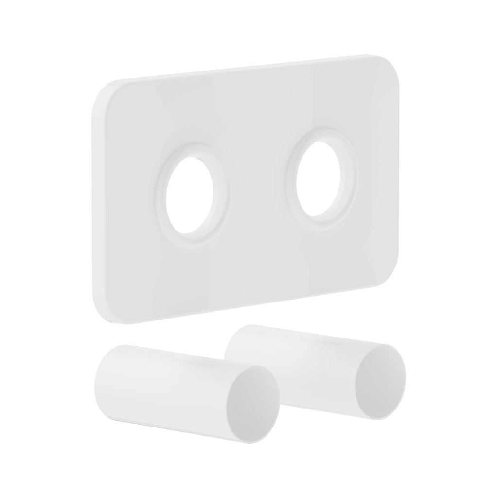 - Maskovací sada se skládá z dvojité rozety a dvou objímek určených k montáži termostatických souprav a radiátorových ventilů.