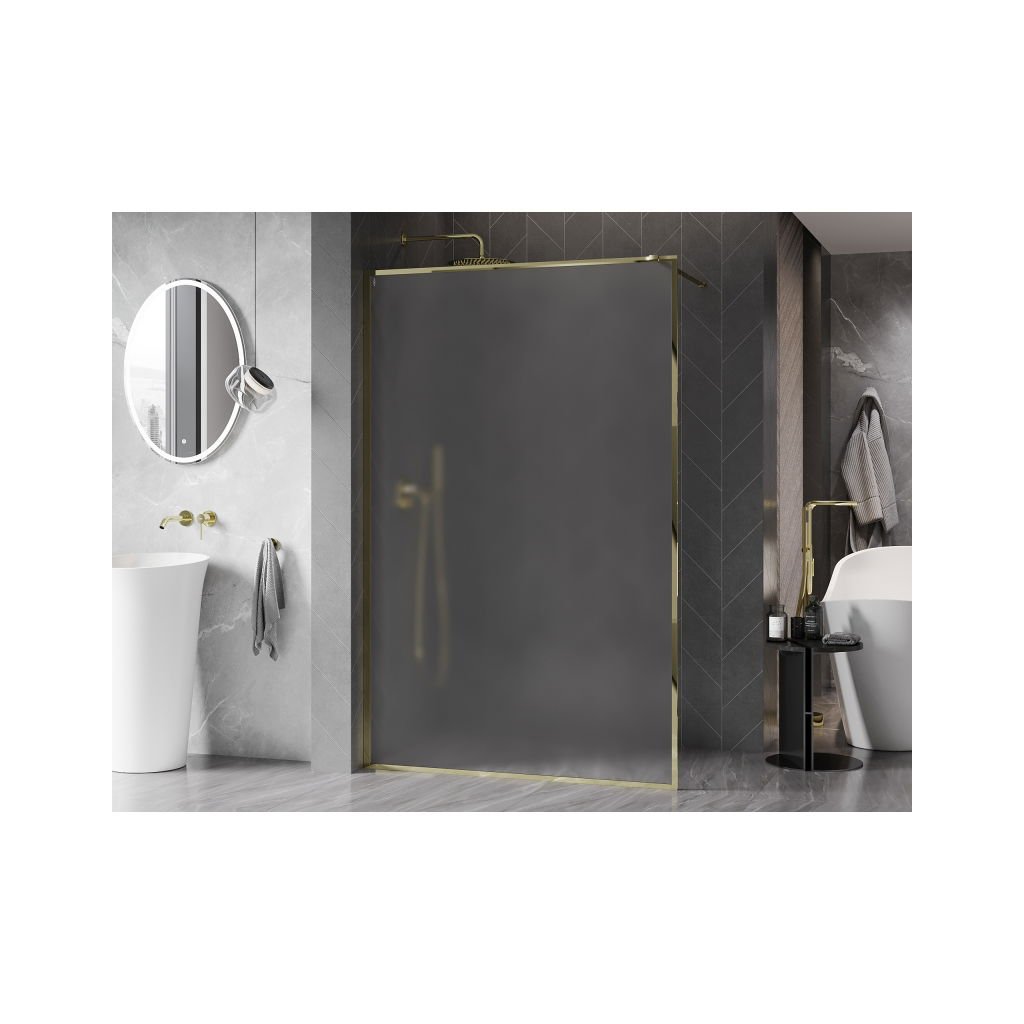Mexen, Mexen Kioto-XF sprchová stěna s rámem 100 x 202 cm, matná 10 mm, zlatá - 800-100-104-50-30-X