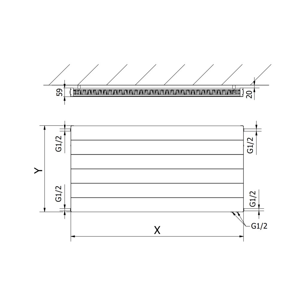 Mexen, Mexen Line panelový radiátor CVL11 600 x 2000 mm, spodní připojení, 1567 W, antracit - W611L-060-200-66