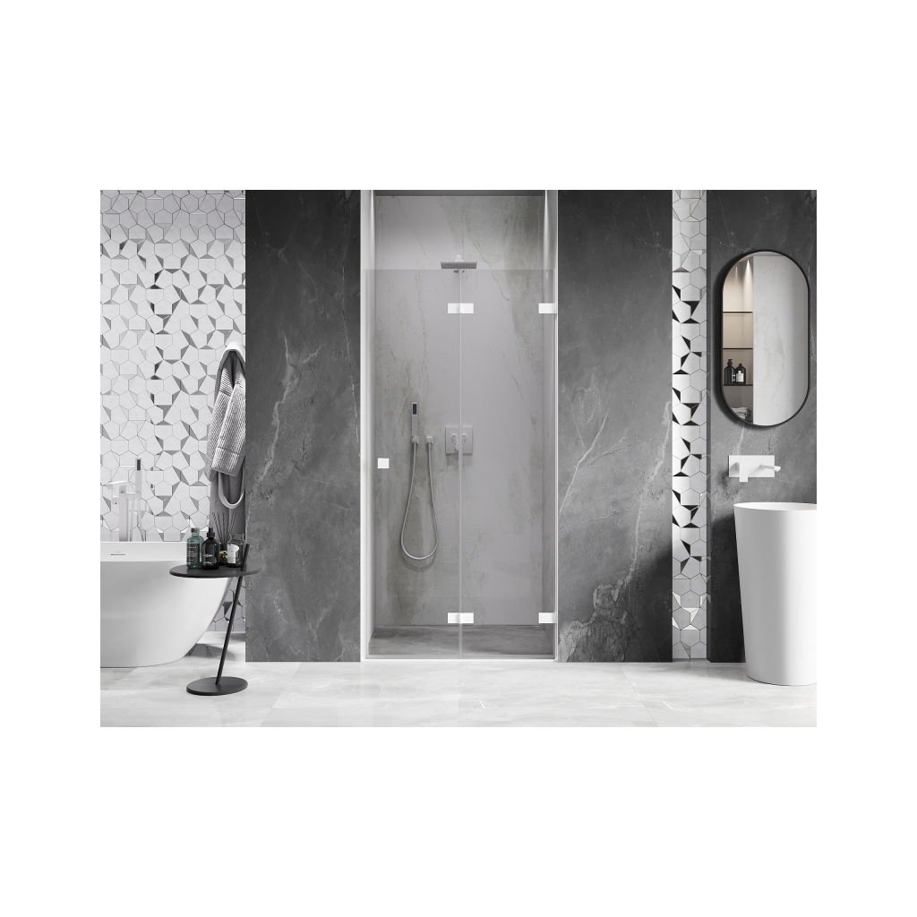 Mexen, Mexen Lunar-F pravé skládací sprchové dveře 100 cm, transparentní, bílé - 836-100-000-20-00-P