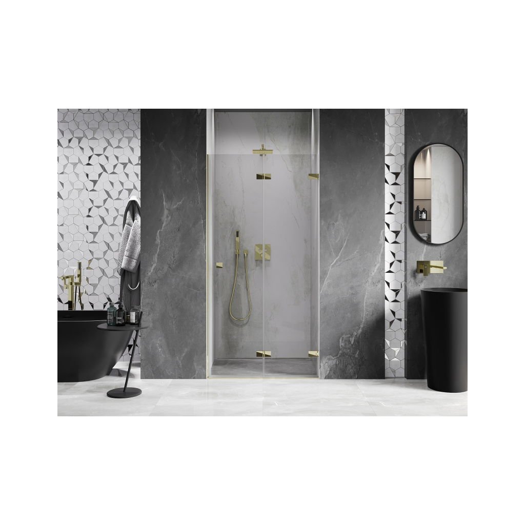 Mexen, Mexen Lunar-F pravé sklápěcí sprchové dveře 60 cm, transparentní, zlaté - 836-060-000-50-00-P
