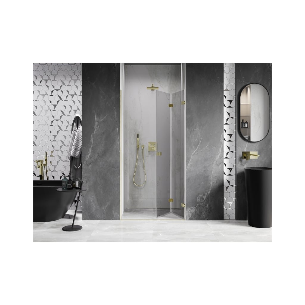 Mexen, Mexen Lunar-F pravé sklápěcí sprchové dveře 75 cm, transparentní, broušené zlaté - 836-075-000-55-00-P