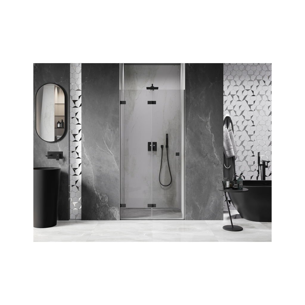 Mexen, Mexen Lunar-F skládací levé sprchové dveře 60 cm, průhledné, černé - 836-060-000-70-00-L