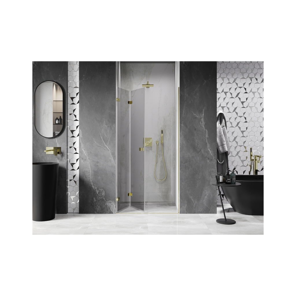 Mexen, Mexen Lunar-F skládací levé sprchové dveře 75 cm, transparentní, zlaté - 836-075-000-50-00-L