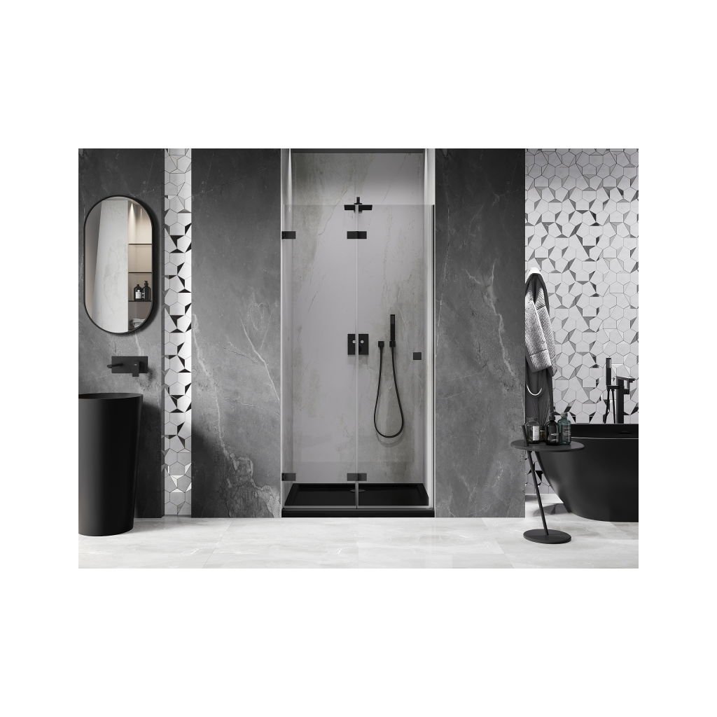Mexen, Mexen Lunar-F skládací levé sprchové dveře 90 cm, průhledné, černé - 836-090-000-70-00-L