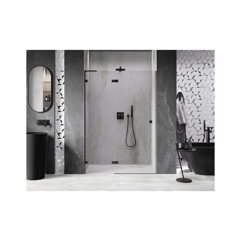 Mexen, Mexen Lunar L levé otočné sprchové dveře 140 cm, transparentní, černé - 834L-140-000-70-00-L