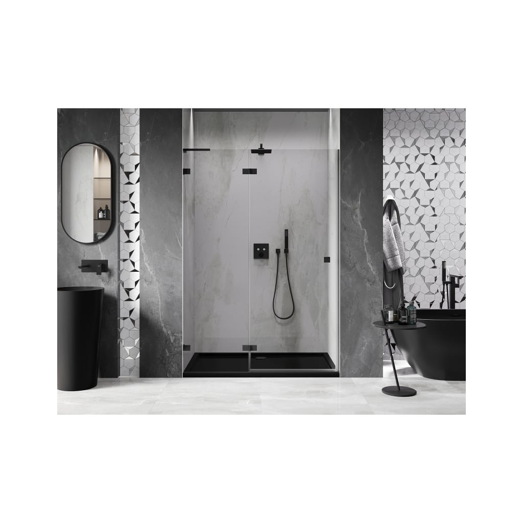 Mexen, Mexen Lunar L Otočné levé sprchové dveře 130 cm, transparentní, černé - 834L-130-000-70-00-L