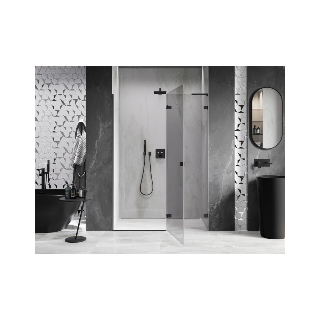 Mexen, Mexen Lunar L Otočné pravé sprchové dveře 130 cm, průhledné, černé - 834L-130-000-70-00-P