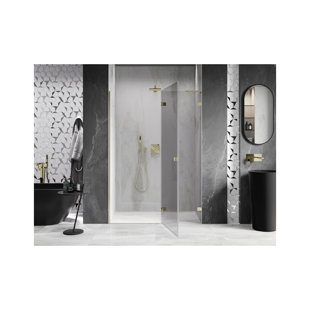 Mexen, Mexen Lunar L sklápěcí pravé sprchové dveře 135 cm, transparentní, zlaté - 834L-135-000-50-00-P