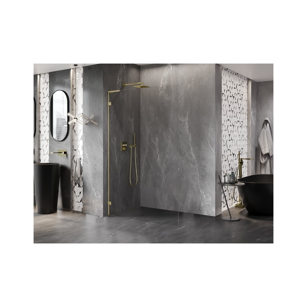 Mexen, Mexen Lunar L sprchová stěna levá 90 x 200 cm, průhledná 8 mm, zlatá - 830L-090-000-50-00-L