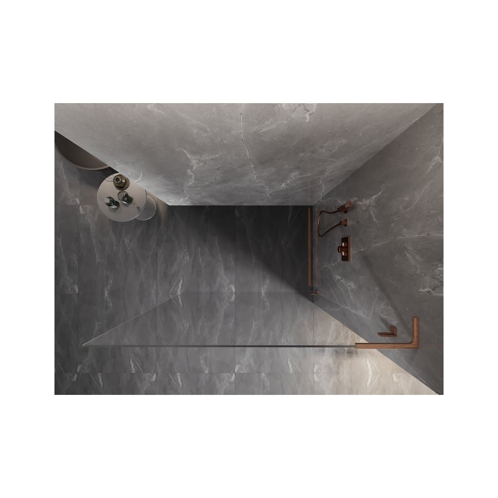 Mexen, Mexen Lunar L sprchová stěna pravá 100 x 200 cm, průhledná 8 mm, broušená měď - 830L-100-000-65-00-P