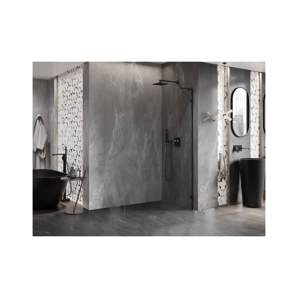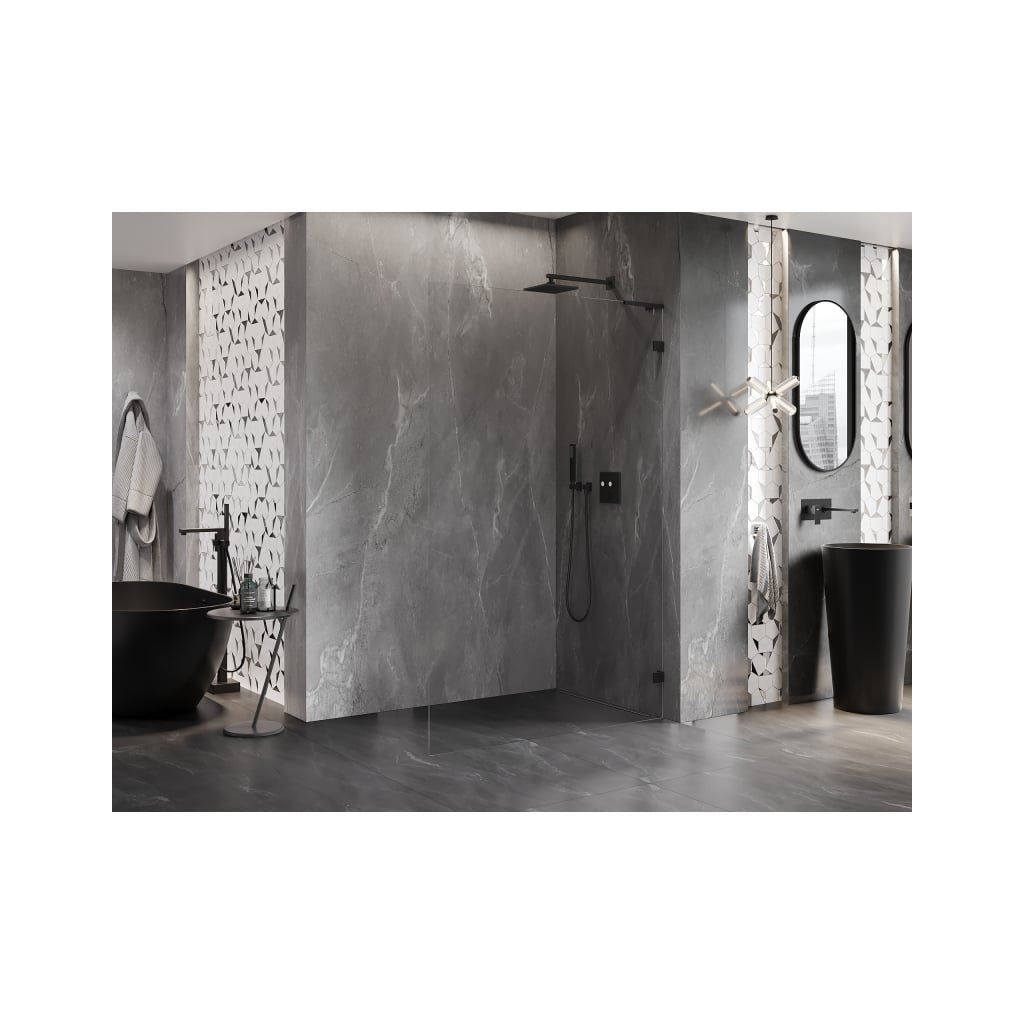 Mexen, Mexen Lunar L sprchová stěna pravá 110 x 200 cm, průhledná 8 mm, černá - 830L-110-000-70-00-P