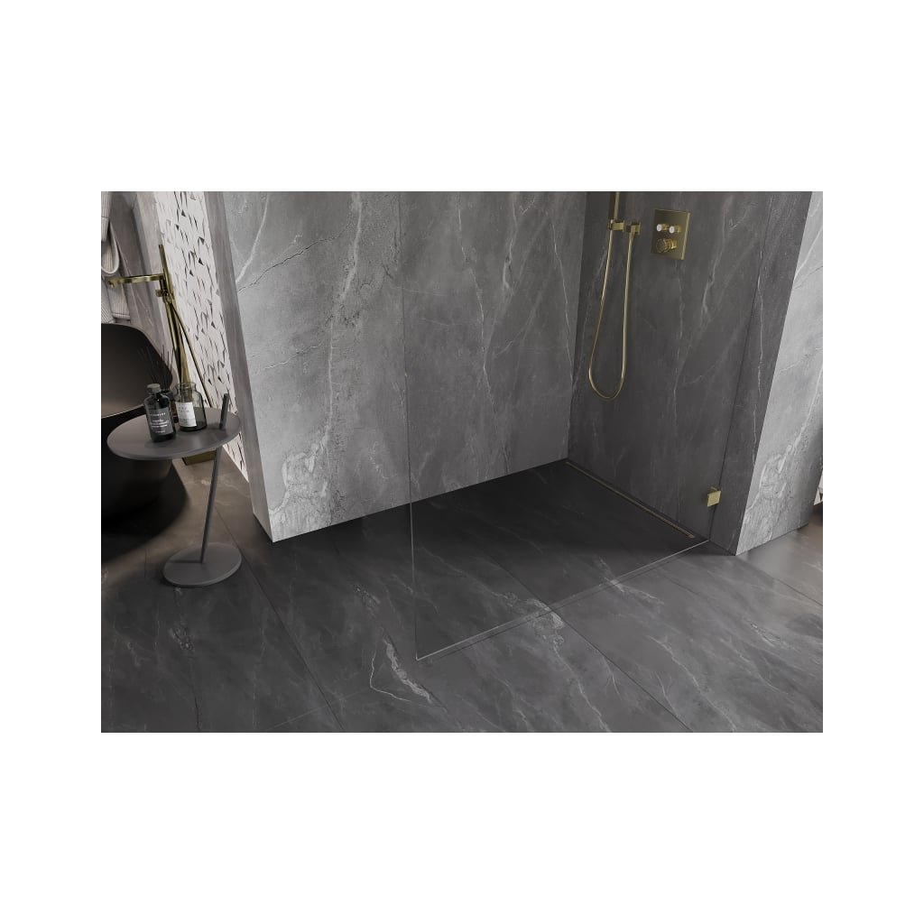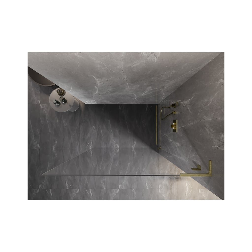 Mexen, Mexen Lunar L sprchová stěna pravá 70 x 200 cm, průhledná 8 mm, zlatý kartáč - 830L-070-000-55-00-P