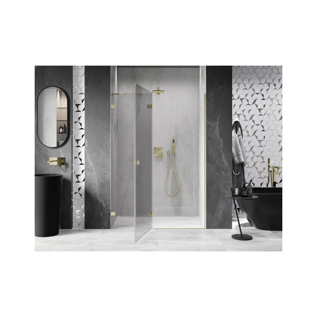 Mexen, Mexen Lunar levé otočné sprchové dveře 135 cm, transparentní, broušené zlato - 834-135-000-55-00-L