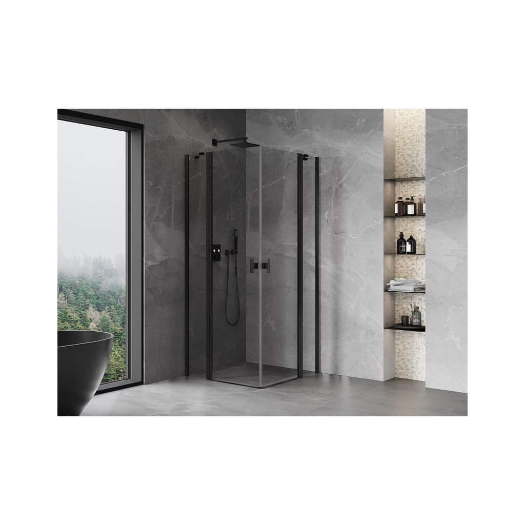 Mexen, Mexen Mist Duo výklopný sprchový kout 100 x 100 cm, průhledný, černý - 8A4-100-100-70-00
