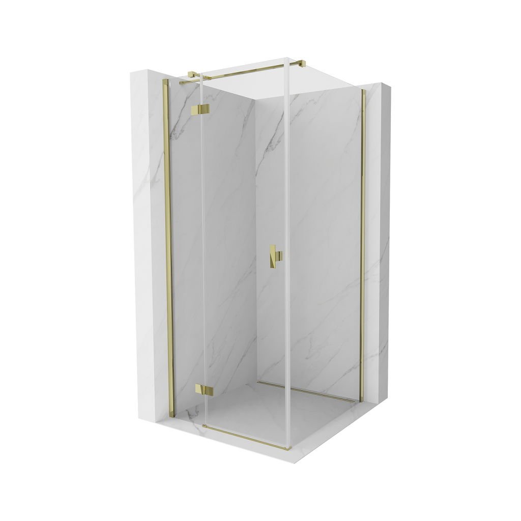 Mexen, Mexen Mist HT sklápěcí sprchový kout levý 90 x 90 cm, transparentní, zlatý - 8A5T-090-090-50-00-L