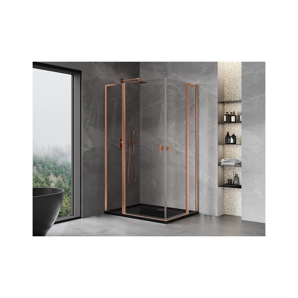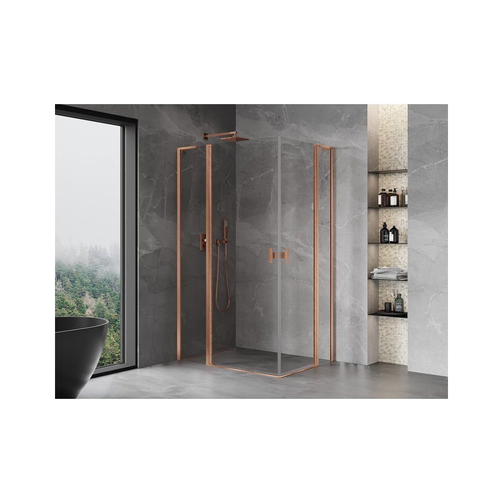 Mexen, Mexen Mist L Duo sklápěcí sprchový kout 115 x 90 cm, transparentní, broušená měď - 8A4L-115-090-65-00