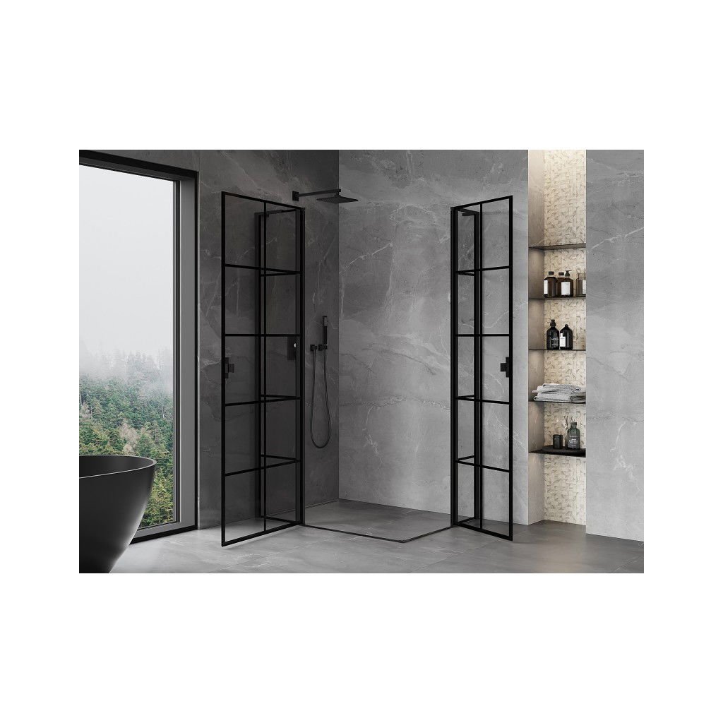 Mexen, Mexen Mist L Duo výklopný sprchový kout 120 x 100 cm, černá mřížka - 8A4L-120L-100P-70-77