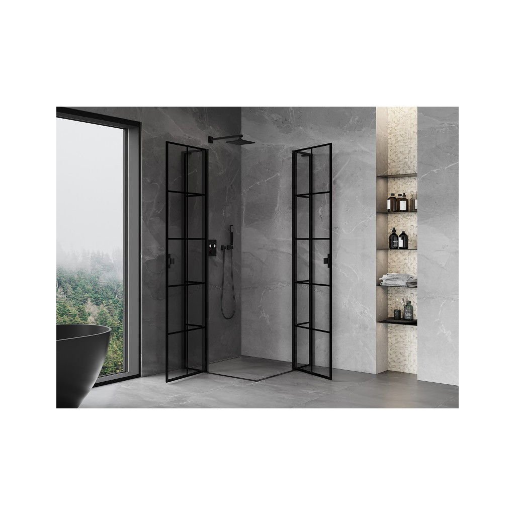 Mexen, Mexen Mist L Duo výklopný sprchový kout 95 x 95 cm, černá mřížka - 8A4L-095L-095P-70-77