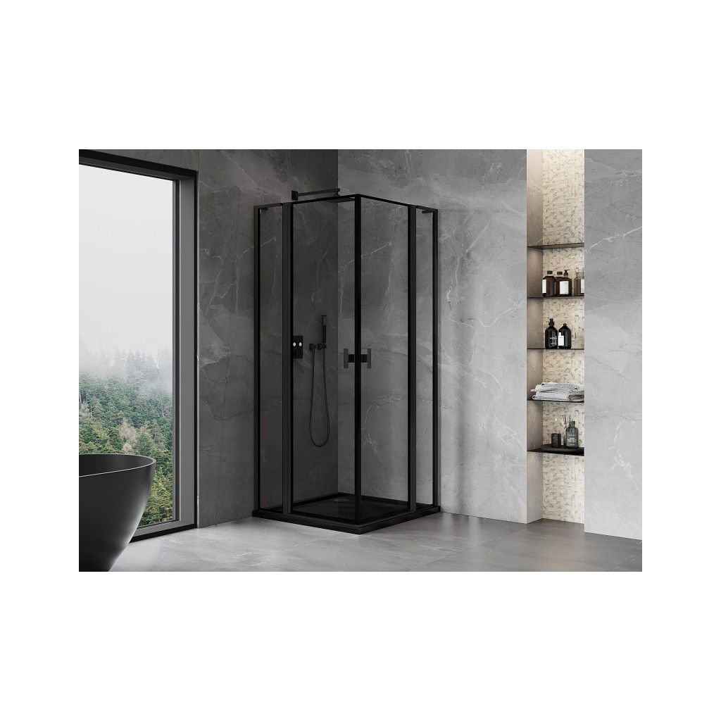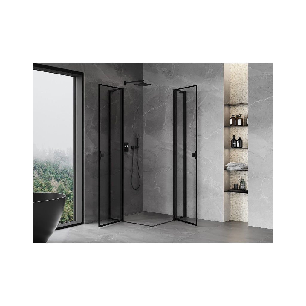 Mexen, Mexen Mist L Duo výklopný sprchový kout 95 x 95 cm, černý rám - 8A4L-095L-095P-70-70
