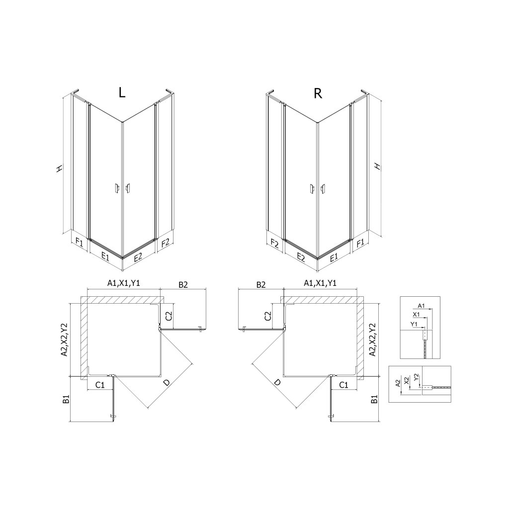 Rozměry: 95x95 cm (levé dveře 95 cm, pravé dveře 95 cm)