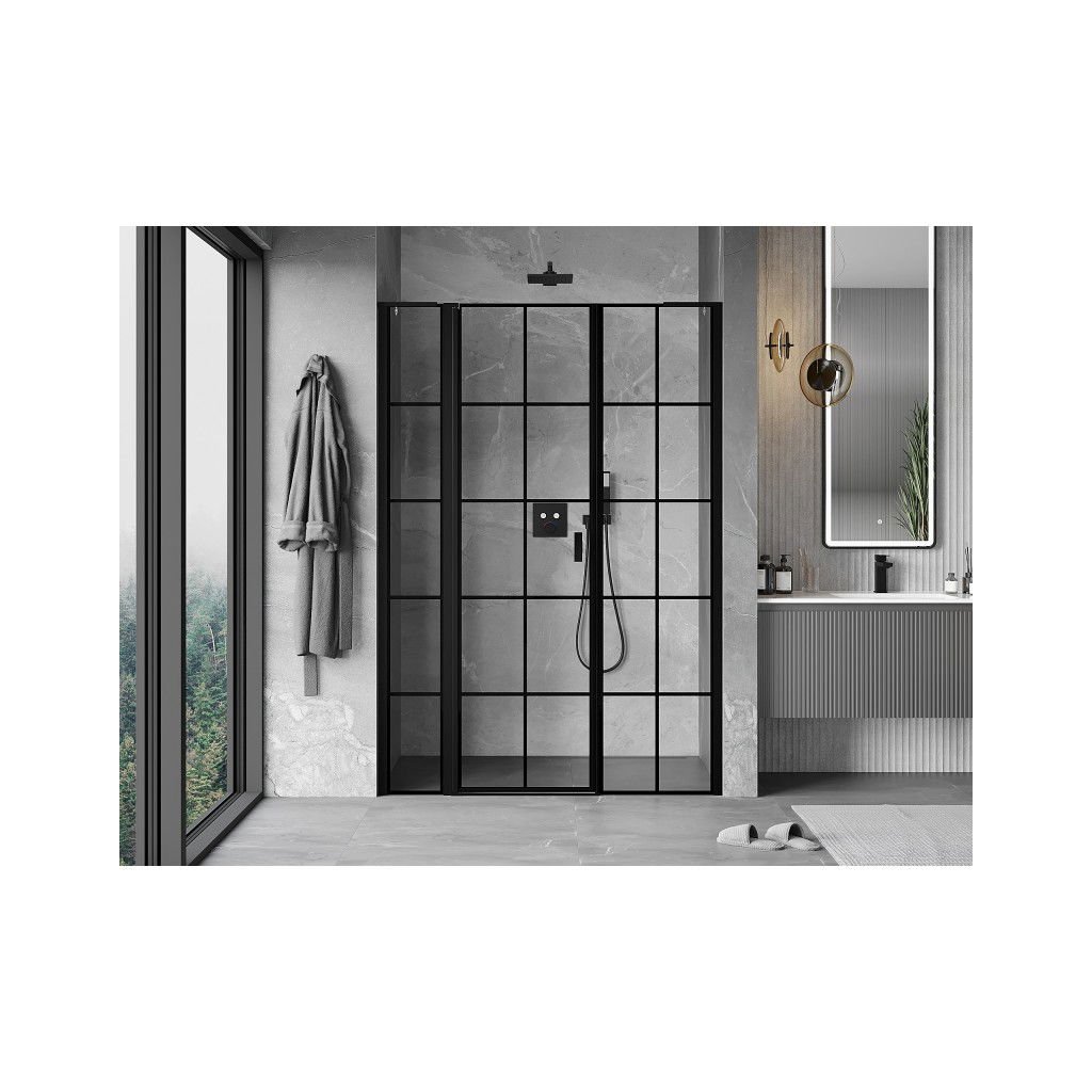 Mexen, Mexen Mist L levé otočné sprchové dveře 140 cm, černá mřížka - 8A4L-140-001-70-77-L