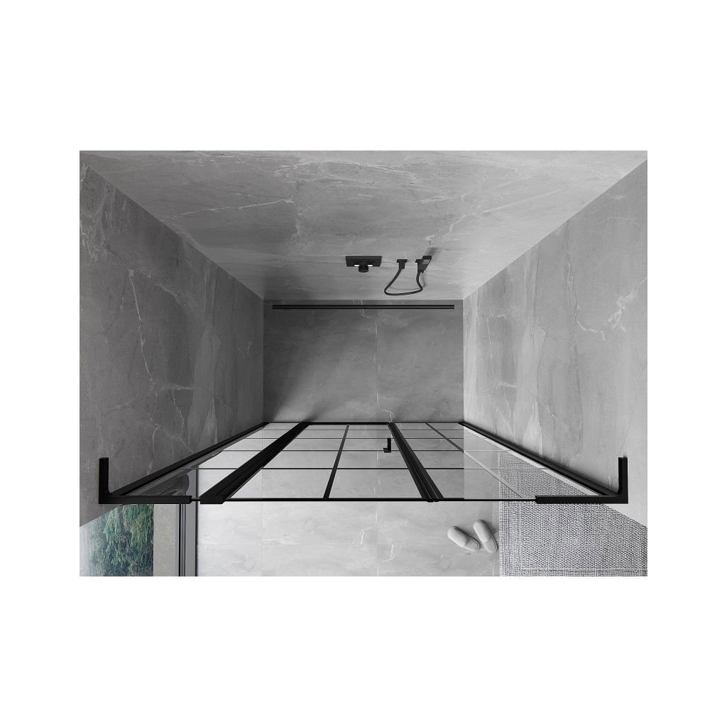 Mexen, Mexen Mist L levé otočné sprchové dveře 155 cm, černá mřížka - 8A4L-155-001-70-77-L