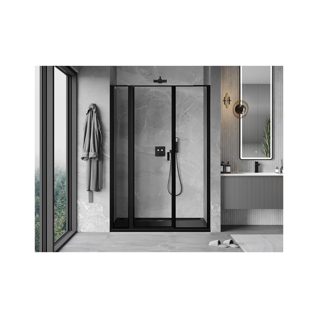Mexen, Mexen Mist L levé otočné sprchové dveře 155 cm, černý rám - 8A4L-155-001-70-70-L