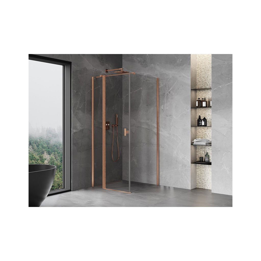 Mexen, Mexen Mist T sklápěcí sprchový kout 95 x 95 cm, transparentní, broušená měď - 8A4T-095-095-65-00