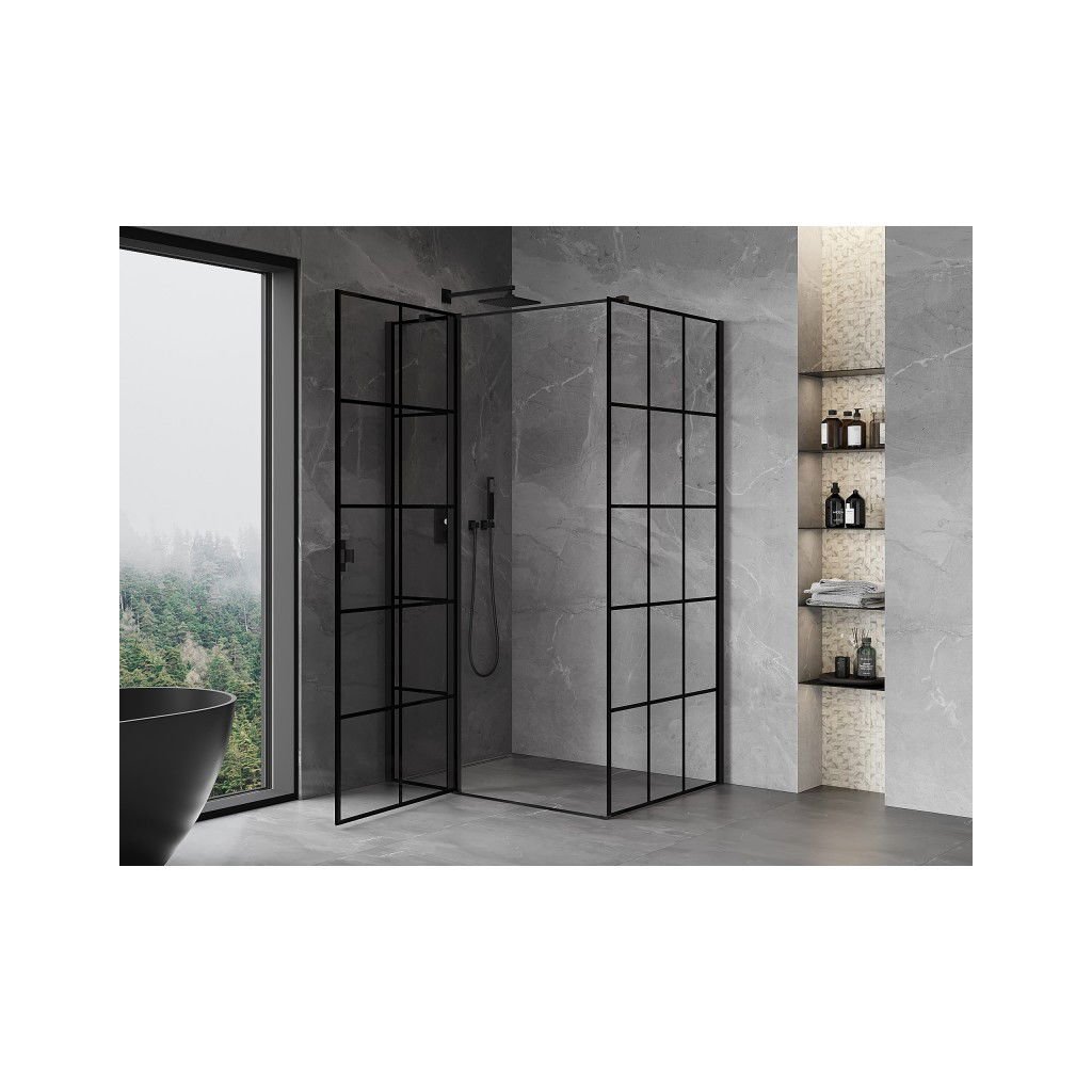 Mexen, Mexen Mist T sklápěcí sprchový kout levý 120 x 75 cm, černá mřížka - 8A4T-120-075-70-77-L