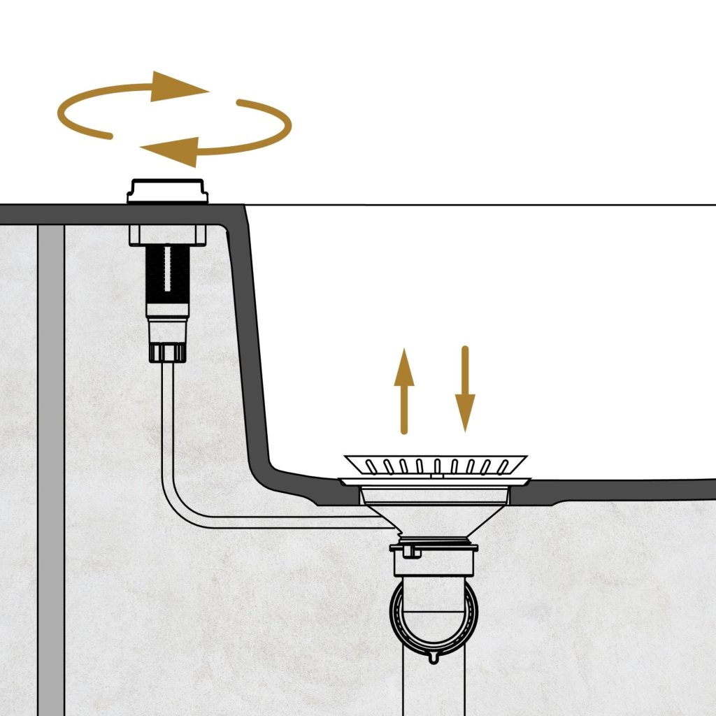Mexen, Sifon s automatem pro odpad 2-komorového kuchyňského dřezu, zlatá, 66921-50