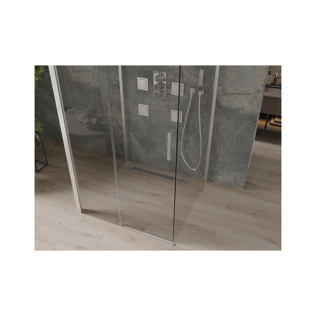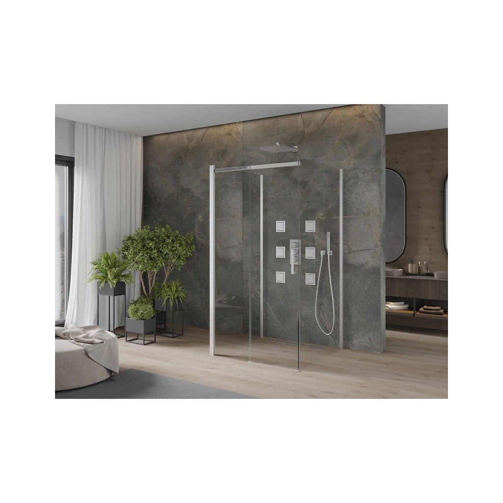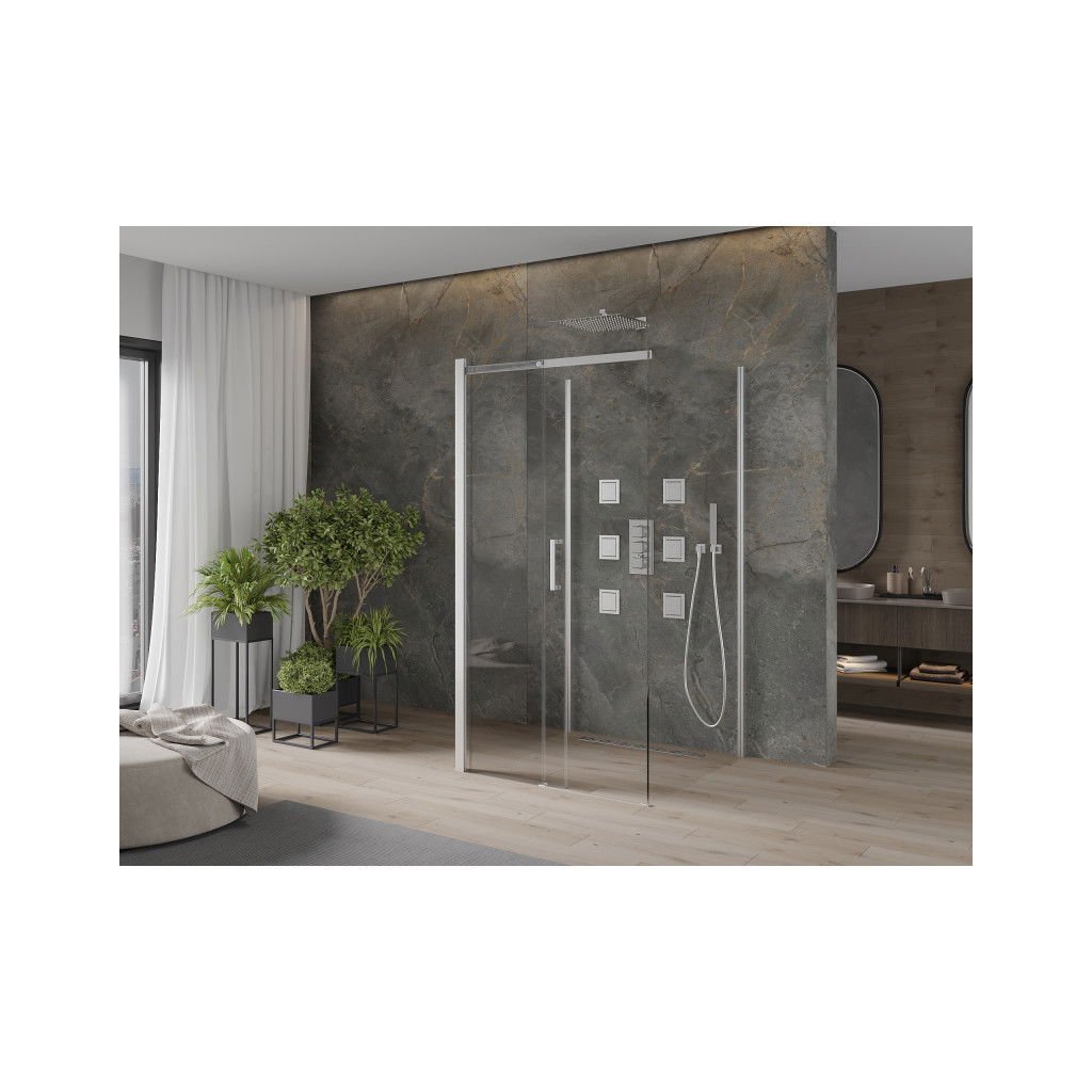 Skvělá volba do každé koupelny. Exkluzivní sprchový kout je vyroben z 8 mm silného tvrzeného skla v čirém provedení. Aplikovaná povrchová úprava skla (Easy-Clean) zajišťuje maximální komfort všem uživatelům. Tato technologie zaručuje jedinečné vlastnosti zabraňující znečištění skla – povrch stačí pouze opláchnout vodou. Kout je uchycen v chromovaných hliníkových profilech a je vybaven těsněním zabraňujícím úniku vody mimo sprchový kout. Dveře sprchového koutu jsou posuvné (pojezdy s kvalitními odolnými kolečky). K otevírání slouží elegantní kovová rukojeť.